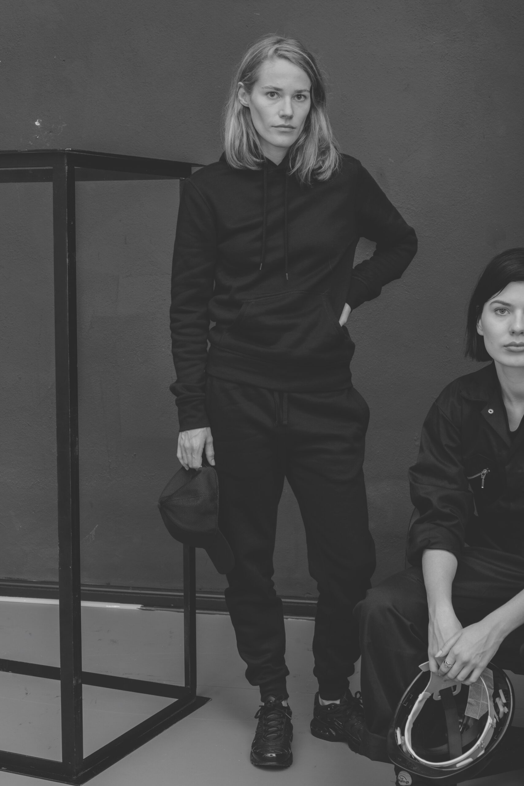 Mit dieser aktuellen Serie knüpft Andrzej Steinbach an seine präzis minimalistische fotografische Inszenierungspraxis an, meist neutral wirkende „Figuren“ als typisierte, geschlechtsneutrale Stellvertreterinnen und Stellvertreter in ebenso neutralisierten Raumumgebungen und mit Kleidung aus Kontexten der Arbeitswelt bzw. neutraler Streetwear zu inszenieren.